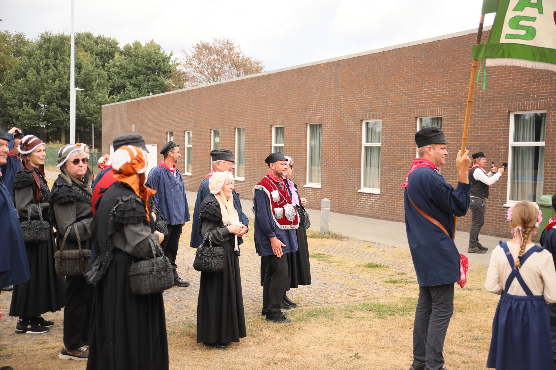 Op zaterdag 30 augustus trok een twintigtal gildebroeders, samen met de fanfare, in stoet uit om onze koning Patrick feestelijk op te halen. Bij aankomst werden de aanwezigen gastvrij onthaald met een hapje en een drankje, waardoor de dag in een gezellige en gemoedelijke sfeer van start kon gaan. Daarna wandelde het gezelschap opnieuw in stoet naar het gildeterrein, waar de genodigden de groep reeds stonden op te wachten.