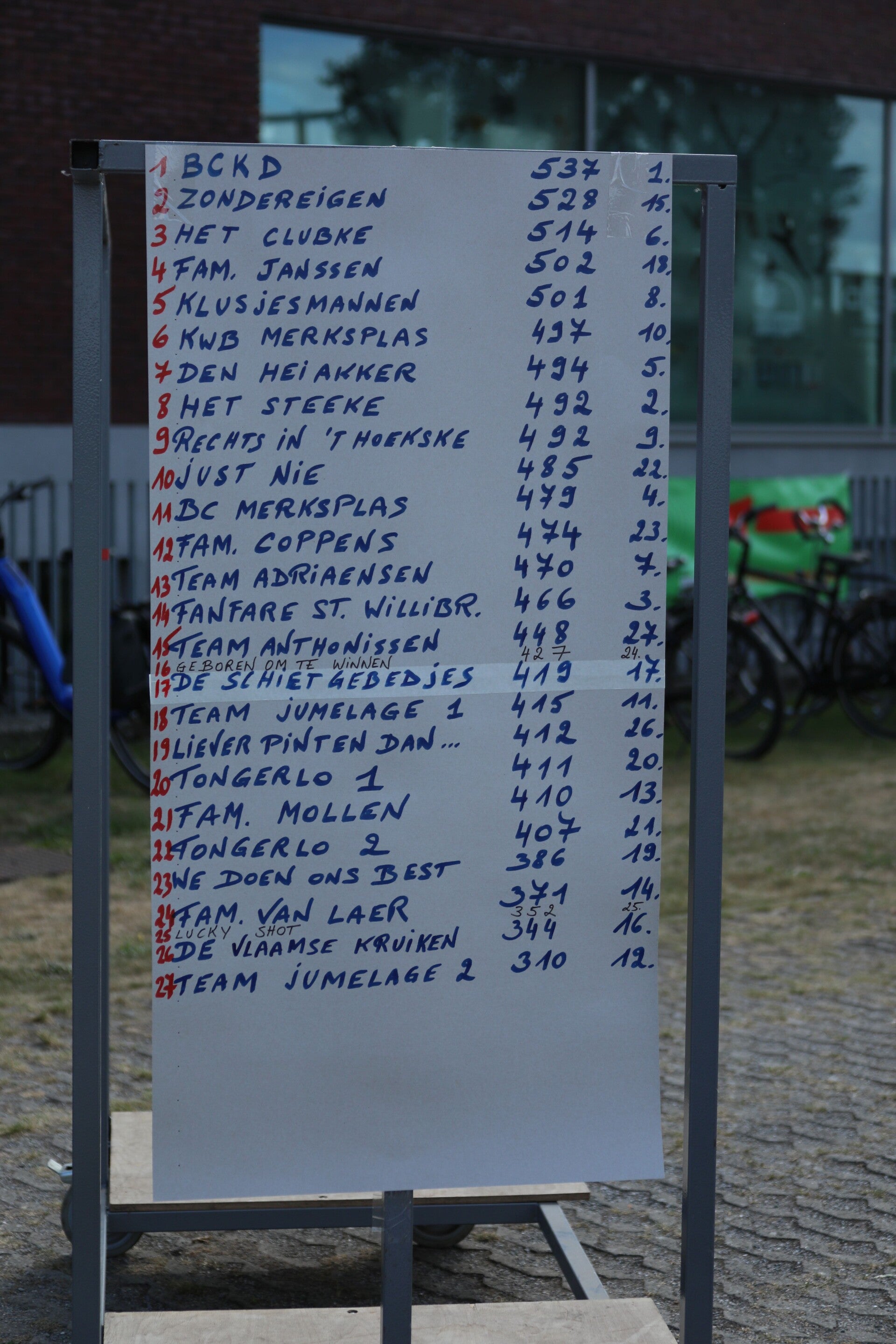 inleg per ploeg : € 15,- (dit wordt achteraf verdeeld als prijzengeld)